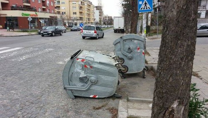 Бурният вятър в София обърна кофи за боклук и изкърти пътни знаци.