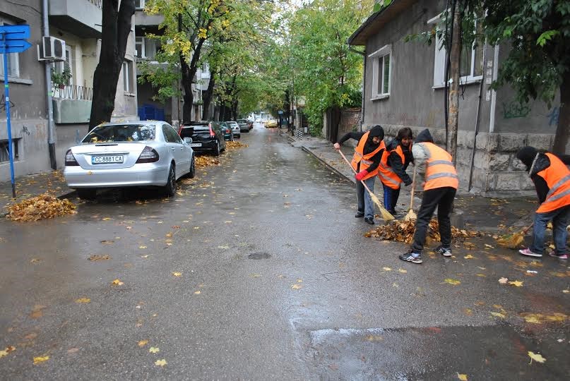 Усилено продължава почистването и премахването на паднали листа и кестени в целия град, започнало от преди месец.