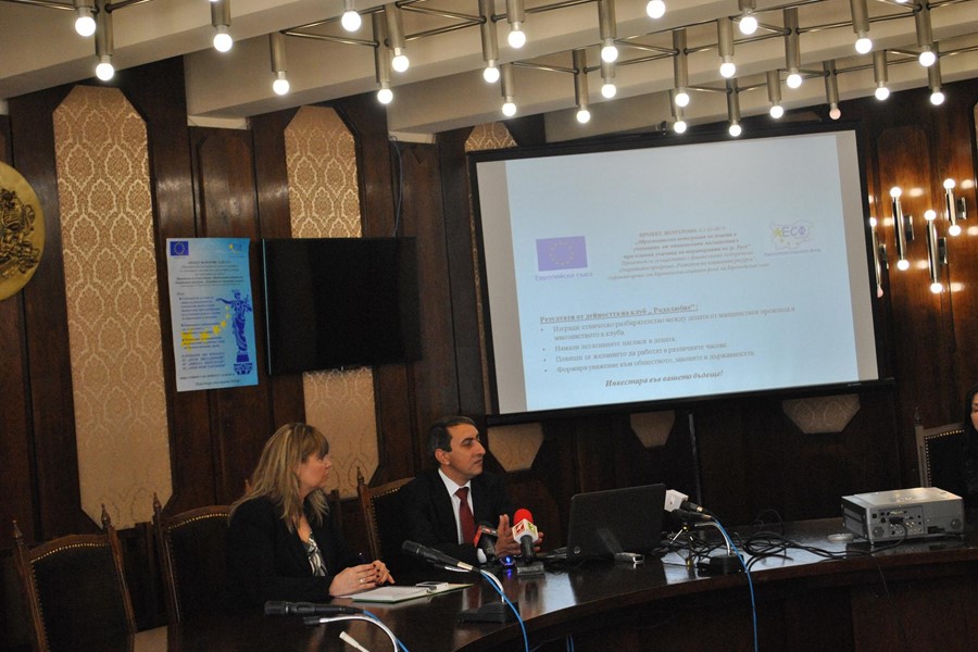 Днес, в Заседателната зала на Община Русе, се проведе заключителната пресконференция по проект „Образователна интеграция на децата и учениците от етническите малцинства в три основни училища на град Русе“. Дейностите по проекта представи неговият ръководител Сашо Щерев, в присъствието на медии, част от екипа и преподаватели, работили с децата.