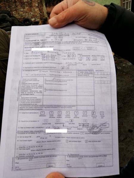 Бащата Снежан Методиев показа на репортерския екип смъртния акт на Людмил, за да видят всички, че няма никаква друга причина за смъртта на сина му Людмил извън остра сърдечно-съдова и дихателна недостатъчност, причинена от електрошоков удар.