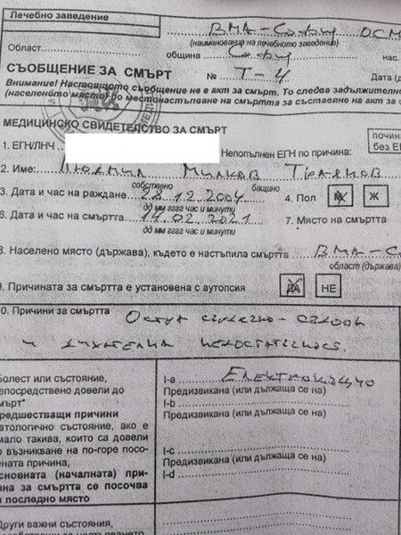Бащата Снежан Методиев показа смъртния акт на момчето, за да не се спекулира с причината за смъртта