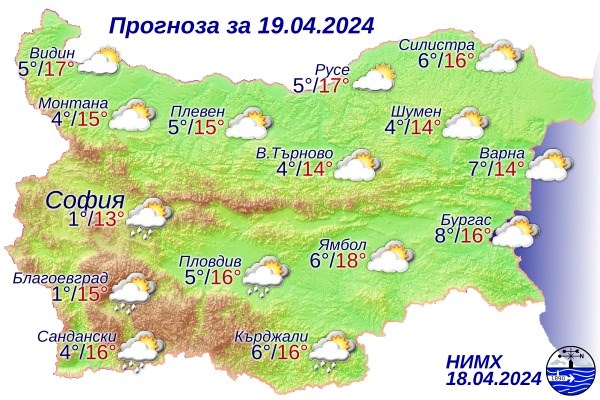 Вятърът ще се ориентира от изток-североизток и ще се усили. Максималните температури ще бъдат между 13° и 18°, в София - около 13°. През нощта срещу събота валежите ще се усилят, ще обхват и Източна България; на места ще бъдат значителни.