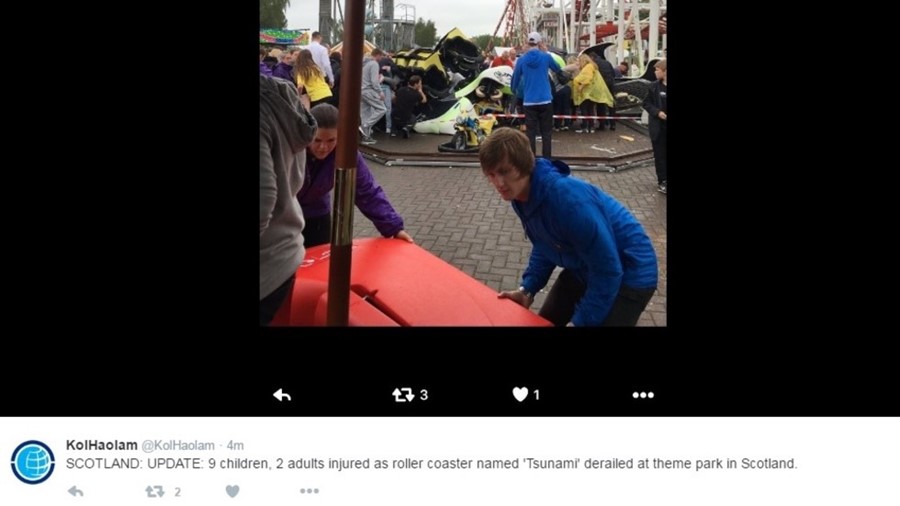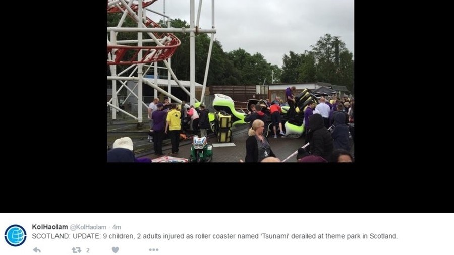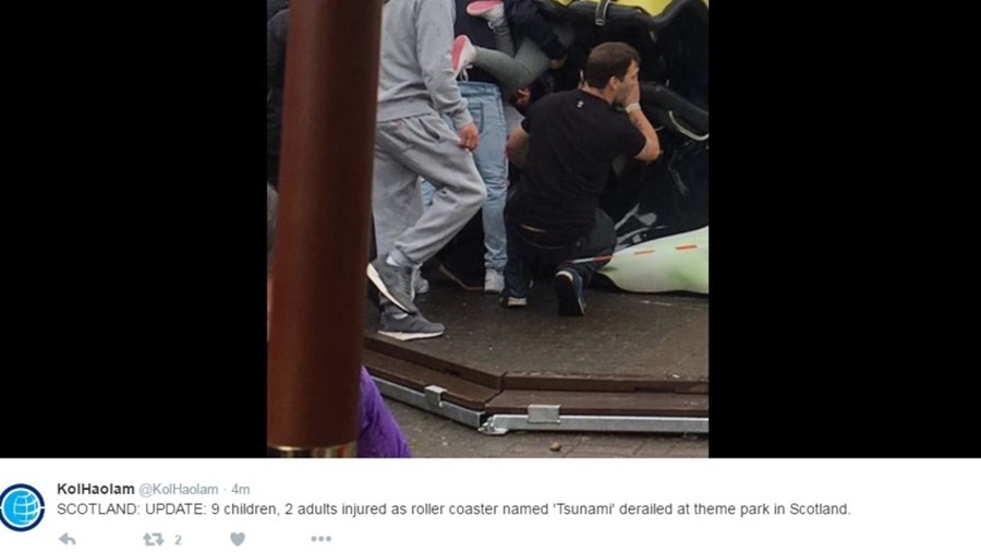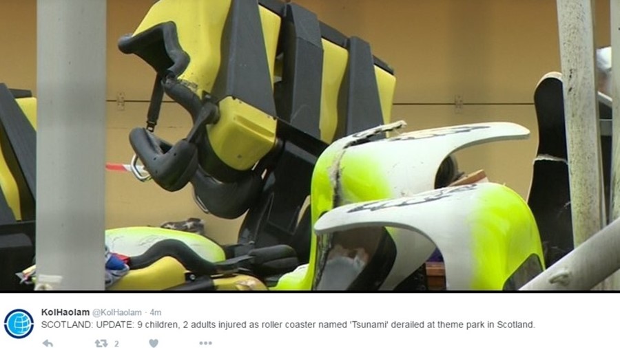 Най-малко единайсет души, сред които девет деца, са били ранени при злополука с влакче в увеселителен парк в Шотландия, съобщават БТА и Франс прес.