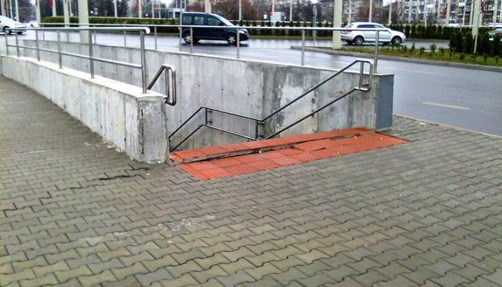 Бетонната плоча под настилката от некачествени тротоарни плочки, се пропука с цепнатина дълга над 40 метра. Наред с това пропадна и тротоарът до подлеза, който вече е опасен за преминаване. Причината е некачествените материали вложени в строежа. Най-вече трошеният камък, пълен с кал, от който, с пак с европари бе изграден бул. Тутракан.