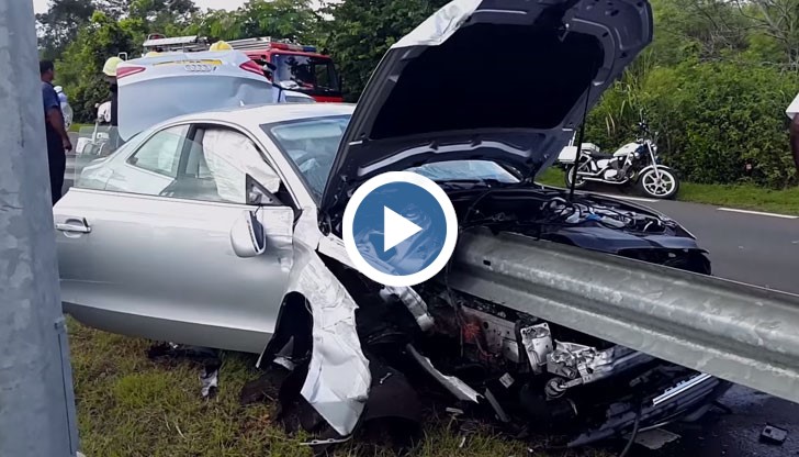 Ужасяваща катастрофа, при която автомобилът се наниза на мантинела