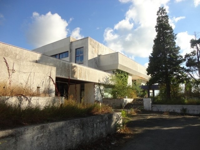 Потънала в бурени, сградата, паметник на соцархитектурата, се руши, а в двора на резиденцията от дълги години не е влизал никой.