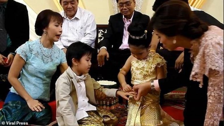 Ето защо родителите на близнаците Киви и Китара, организирали тържествена церемония, за която похарчили хиляди долари, пише "Дейли мейл". Сватбата се провела на 25 декември т.г., близо до Бангкок. Децата са родени през 2012 г., т.е те са едва на 6.