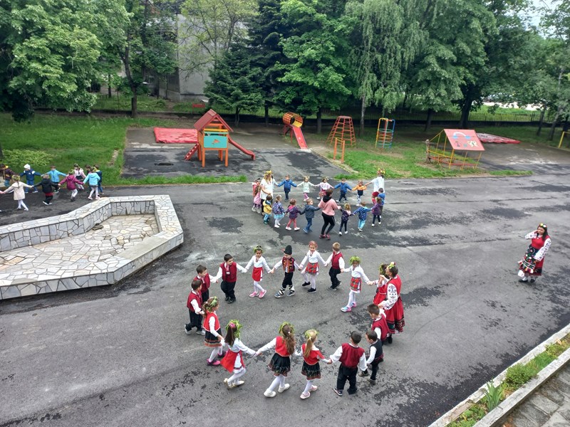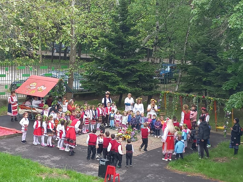 По случай 6 май 80 деца и техните родители и преподаватели се включиха в празника Гергьовски люлки в ДГ „Зора“