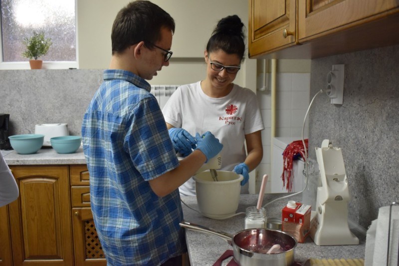 Обновената кухня е резултат от дарения и усилията на „Каритас“ Русе да предоставя качествени и разнообразни дейности в подкрепа на децата със специални нужди. Ателието по готварство цели да развие самостоятелни умения в децата и да ги запознае с кухненските условия и техники. Програмата включва усвояването на различни рецепти за ястия и напитки. Освен ателието по готварство, управителката на Центъра – Теодора Герганова – разказа и за стаята по игротерапия. Тя е отново резултат от подкрепата на Сдружение „Детство мое“, дългогодишен дарител на Центъра, които закупиха всички играчки, необходими за оборудването на пространството. По време на обиколката из Центъра, гостите бяха запознати и с дейностите за подкрепа на родителите на деца със специални нужди. Екип от специалисти работи в тяхна помощ по програмата на УНИЦЕФ „Да пораснем заедно +“. Програмата обхваща теми като: „Всяко дете е специално, всеки родител е специален“, „Нашите деца и как ги обичаме“ и „Психологически потребности на детето“.