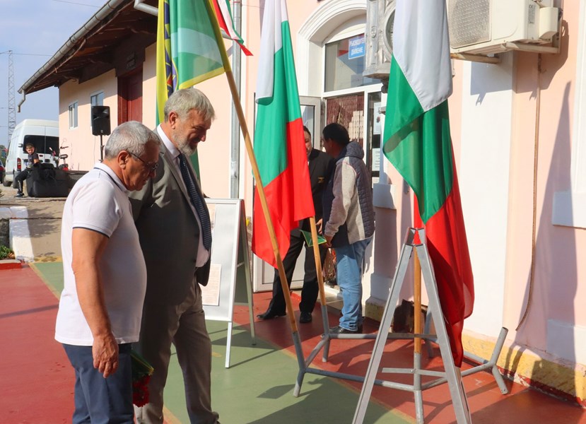 Бяха положени венци пред паметната плоча на жп гарата, където се предполага, че е написан текста на Манифеста