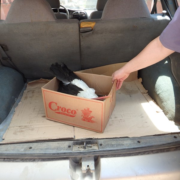 Птицата била открита в района на свинефермата в село Караманово. На безжизненото тяло се натъкнал един от работниците в животинската ферма. Той веднага подал сигнал за бедстващото животно на спешния телефон 112.