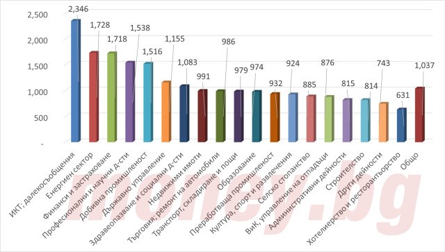 В четири от секторите у нас, където заплатите на са най-високи, средното брутно трудово възнаграждение надхвърля 1500 лева.