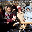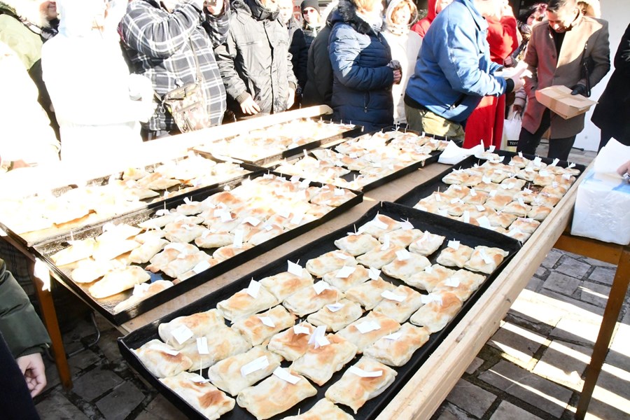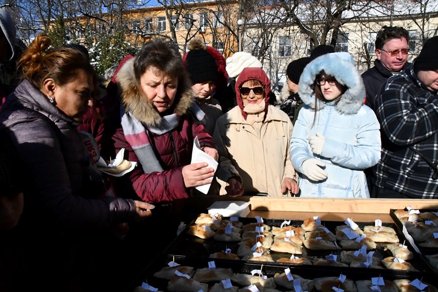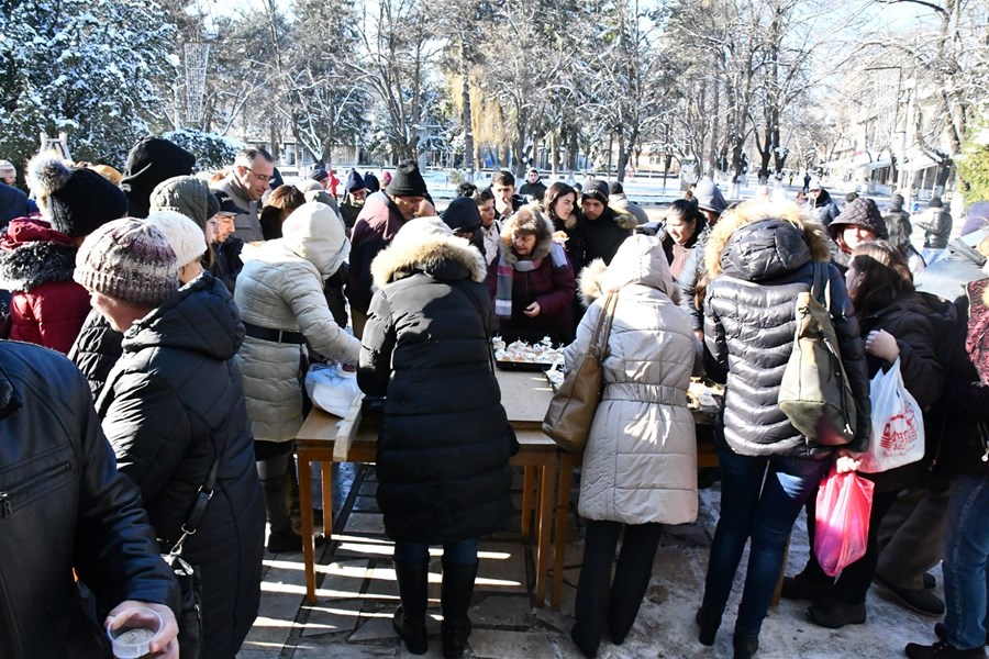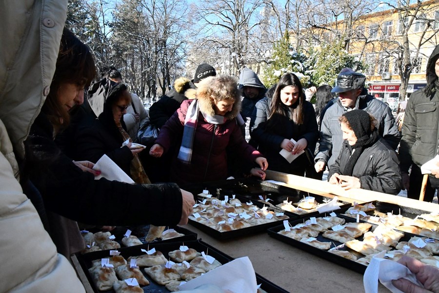 С баница с късмети, с бяло и червено вино се почерпиха кубратчани днес на площада пред местното читалище в Кубрат.