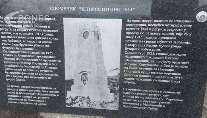 В Охрид сръбското посолство в РС Македония, със съдействието на властите в Скопие, издигна паметник за "убитите сърби от местните български бунтовници", предаде репортер на БГНЕС.
