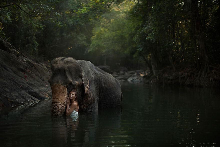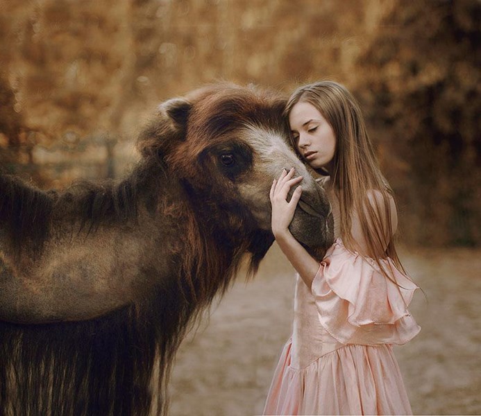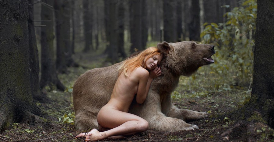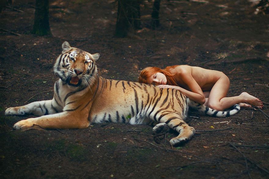 Московчанката Катерина Плотникова е създала тази завладяваща фотосесия, използвайки истински диви животни като модели – тя съчетава красотата на природата и на женското тяло.