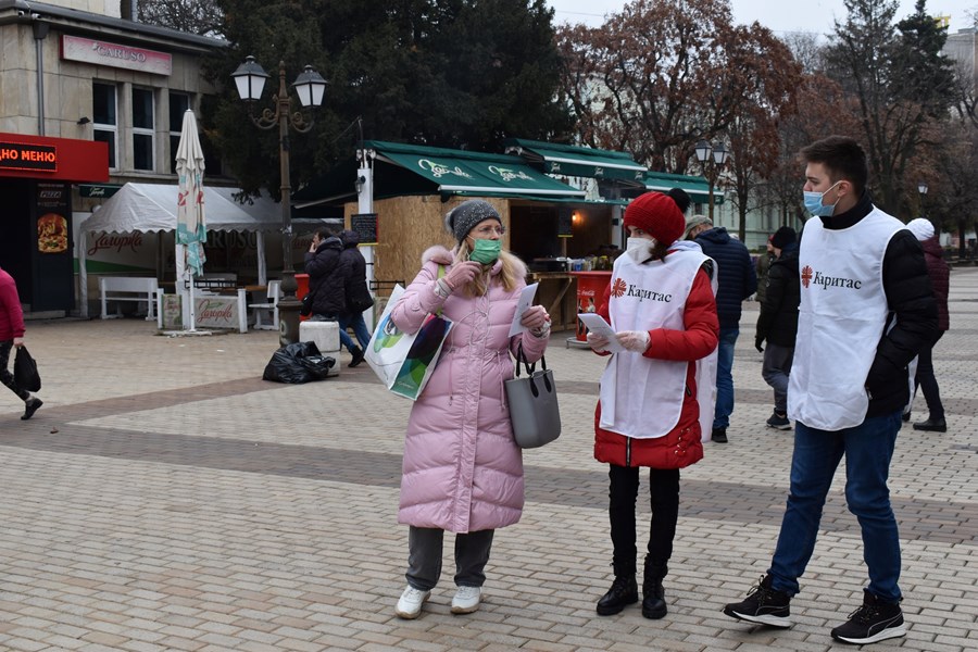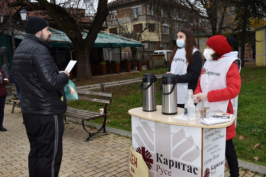 Инициативата на младежите от „Каритас“ в крайдунавския град включваше и раздаване на информационни материали на русенци пред „Градски хали“ в неделния ден.