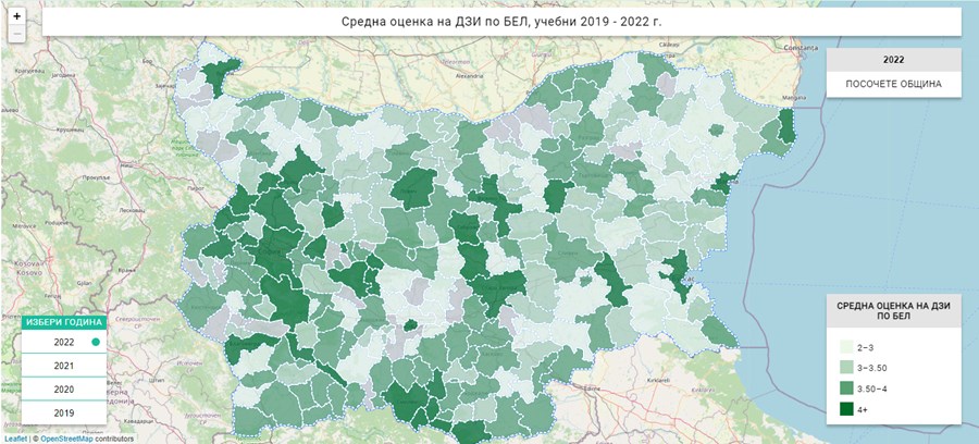 През изминалата година по БЕЛ най-високи са оценките в общините Челопеч (5,02), Божурище (4,77), Драгоман (4,76), Златоград (4,71) и Стралджа (4,66), като и в петте общини броят на явилите се ученици е сравнително малък. Сред по-големите градски центрове най-добре се представят столицата (седмо място с оценка 4,43), Пловдив (осмо място с оценка 4,31) и Велико Търново (девето място с оценка 4,30).