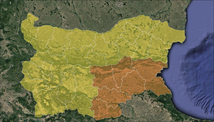 Предупреждения за интензивни валежи в Югоизточна България. Оранжев код бе обявен за шест области на страната. За останалите области днес действа жълт предупредителен код, като в Северозападната част има и предупреждение за заледявания по пътищата.