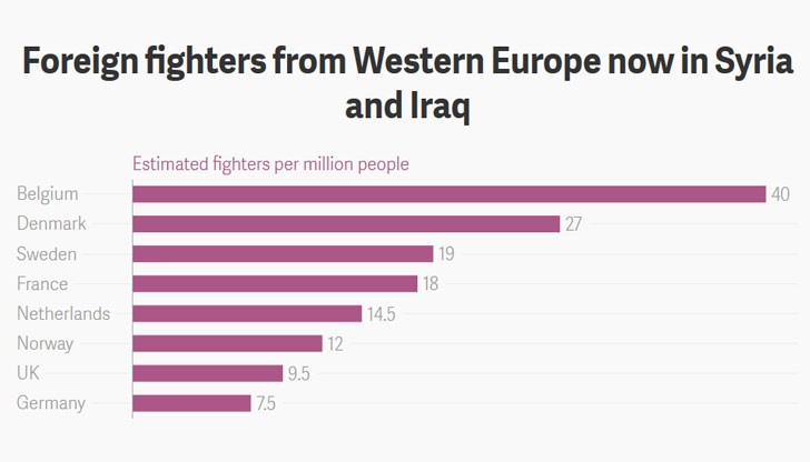 Белгия е водещ доставчик на джихадистите и има най-голям брой чужди бойци от ЕС на глава от населението в Ирак и Сирия.