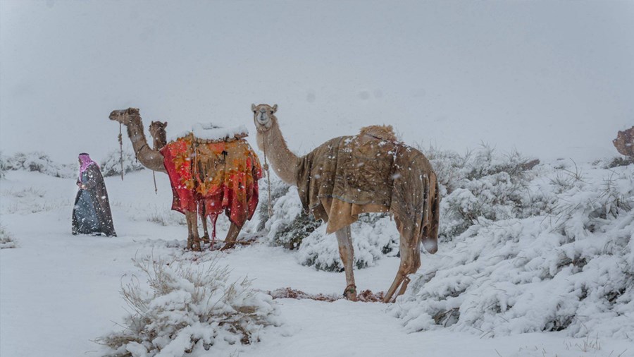 Редки и обилни снеговалежи превърнаха части от Саудитска Арабия в истинска зимна картина, която изненада както местните жители, така и международните наблюдатели. Планинските райони в провинция Табук, и по-специално върхът Джебел ал-Лауз (Планината на бадемите), бяха покрити с дебела снежна покривка през последните 48 часа.