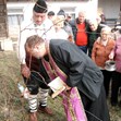 Царят на лозята ритуално отряза лозовите пръчки, зави венци, а Отец Деян освети и благослови ритуала и поля с вино лозичките.