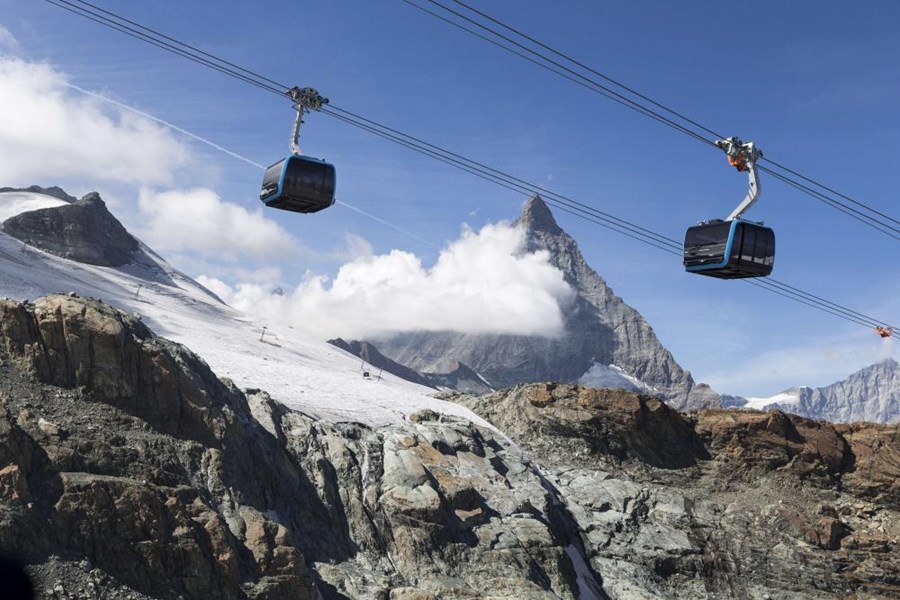 В продължение на три лета работата кипеше ударно с участието на 38 компании и фирми, а общата инвестиция е 52 милиона швейцарски франка. С новото съоръжение и модерните кабинки, в които са инкрустирани кристали "Сваровски", ще могат да се превозват 2000 души на час през цялата година около приказната природа на ледника Теодул пред внушителния връх Матерхорн, информира Канал 3.