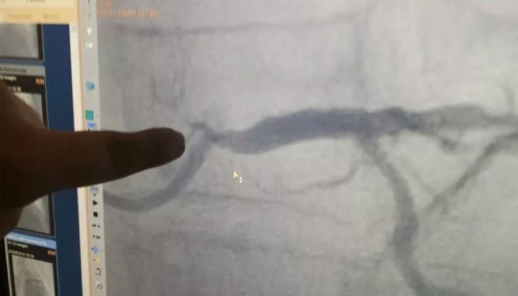 „Когато проверихме отляво, се оказа тотална катастрофа - над 90% стеснение на ствола, което практически е почти несъвместимо с живота. Дясната артерия на 100% запушена с остър инфаркт, а вляво 90%. И всичко това на тази жена, която външно няма никакви белези за толкова тежко увреждане. Освен това тежко запушване, самите кръвоносни съдове бяха изключително калцирани“, допълва д-р Илиев.