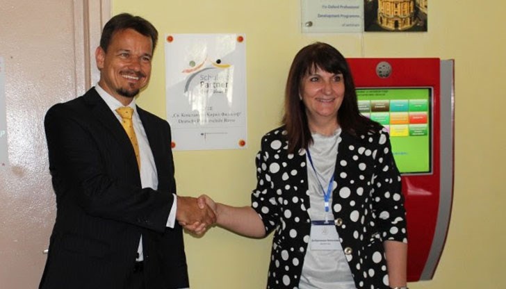 Днес, в СУЕЕ „Св. Константин-Кирил Философ“ беше подписано Споразумение за сътрудничество в рамките на инициативата „Училища – партньори на бъдещето” (PASCH) между училището-домакин на събитието и Гьоте-институт България. Присъстваха заместник-кметът по икономика, инвестиции и собственост Даниела Шилкова и секретарят на Община Русе Димитър Генков, Маркус Хаас – ръководител отдел „Култура и връзки с медиите“ в Посолството на Федерална република Германия в София, Забине Брахман Босе – ръководител на Езиков отдел в Гьоте-институт София и заместник директор, Анна Арсениева – главен експерт в дирекция „Образователни програми и образователно съдържание“ към МОН, Любов Мавродиева – референт отдел „Сътрудничество в образованието“ в Гьоте институт, директорът на СУЕЕ „Св. Константин-Кирил Философ“ Добромира Николова.