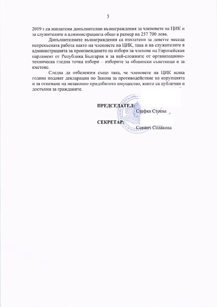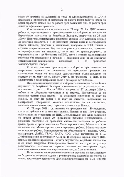 От комисията добавят, че всичко това било гласувано по силата на чл. 51 от Правилника за организацията и дейността на ЦИК, структурата и функциите на нейната администрация, обнародван в Държавен вестник, брой 43 от 12 юни 2015 г. От обяснението излиза, че правилата за бонусите са гласувани месеци преди правилника, който дава основание за раздаването им.