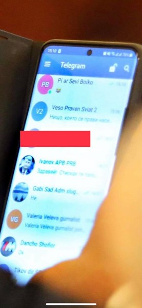 Друга снимка показва с кого си чати Гешев по време на заседание на парламентарната комисия, пише Bird.bg в социалната мрежа. Освен Pi Ar Sevi Boiko в Телеграм му стиска палци някакъв прокурор. Мярка се и някаква административна съдийка. Личният му Pi Ar Веселин Иванов е записан още докато е бил редактор на превзетия от Пеевски сайт “Правен свят”. А Мадам В е записана в тефтера на Гешев като гурналист gurnalist.