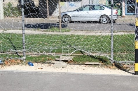 Проверка на общински експерти на спортното игрище, което се намира в кв. "Възраждане", е установила, че на много места мрежата е разкъсана и изцяло съсипана.