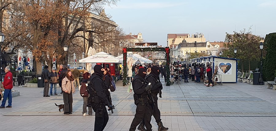 Въоръжени полицаи вече пазят русенци в центъра на града.