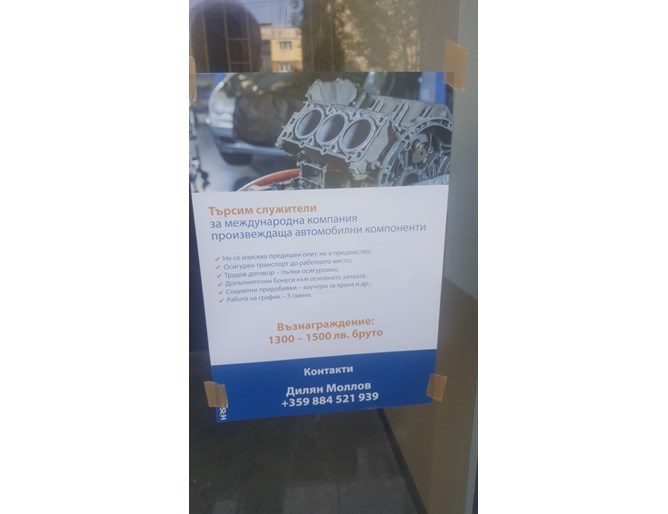 Проверка по сайтовете за обяви за работа показва, че в момента на производителите на авточасти се дължат около 40% от всички обяви за набиране на служители, при това в цялата страна. Стартовите заплати са между 1200 и 1400 лв. месечно, предлагат се много бонуси и почти винаги се изтъква, че не е нужен предишен опит.