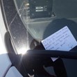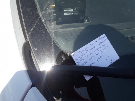 "Г-н полицай, моите уважения, но аз имам няколко фиша за паркиране на тротоар. Сега ви слагам граждански фиш - 50 лв.", гласи написаната бележка, поставена върху предното стъкло на полицейския автомобил.