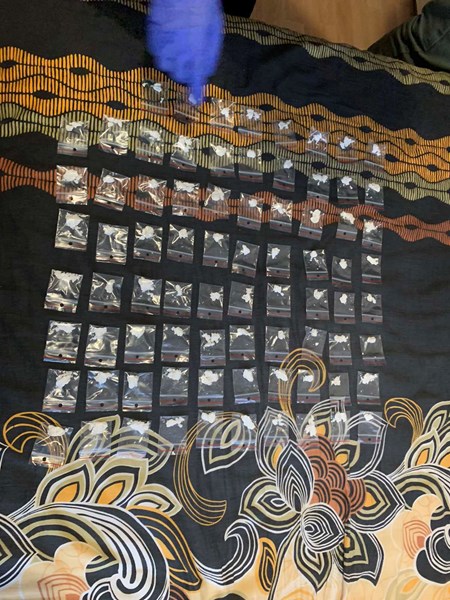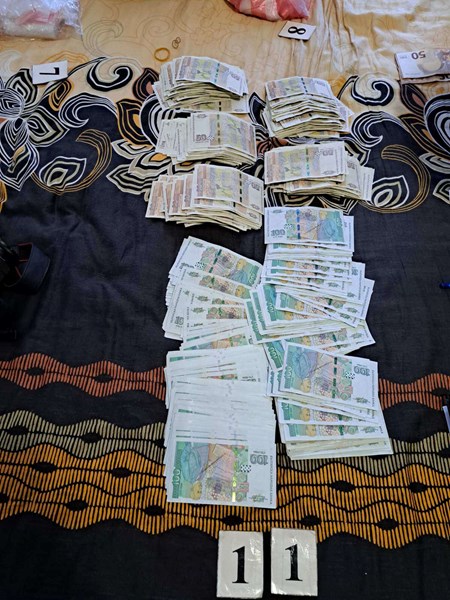 В квартирата на задържания, униформените намерили 136 бр. полиетиленови пликчета с бяло прахообразно вещество – кокаин, сумата от 50 000 лева, електронна везна, множество празни пликчета, както и две торби съдържащи топчета кокаин. Общото иззето количество наркотично вещество е около 250 г.