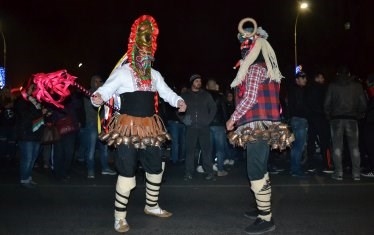 Множеството върви по бул. “Владислав Варненчик”. Предния ден бе блокиран Аспарухов мост, сега рокерите не се насочват натам. Младежи из шествието носят национални знамена, от време на време гърмят пиратки (бомбички). На кръстовището над бившето кино “Тракия” всички спират. Играе се хоро, кукерите отново са във вихъра, настроението е ведро.