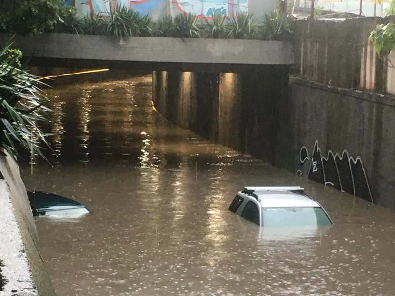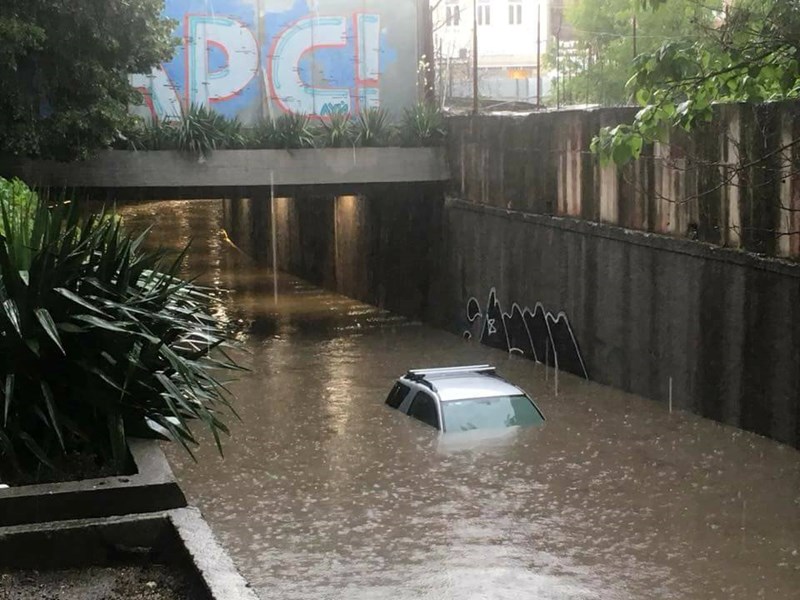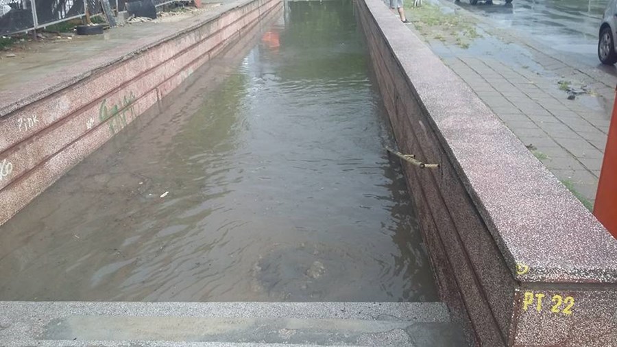 Подлезът "Шипка", както и други подлези в града, са пълни с вода. Дори новият бул."Приморски", който наскоро бе ремонтиран и се предполага, че ще има добра отводнителна система, също не може да побере реките от дъждовна вода, които се стичат по него.