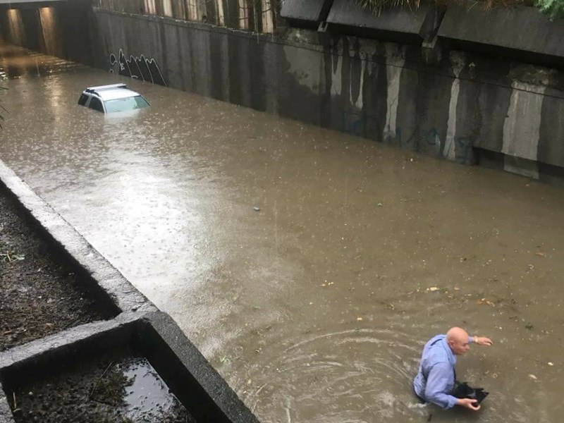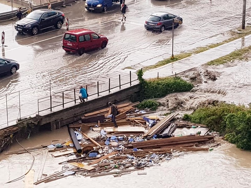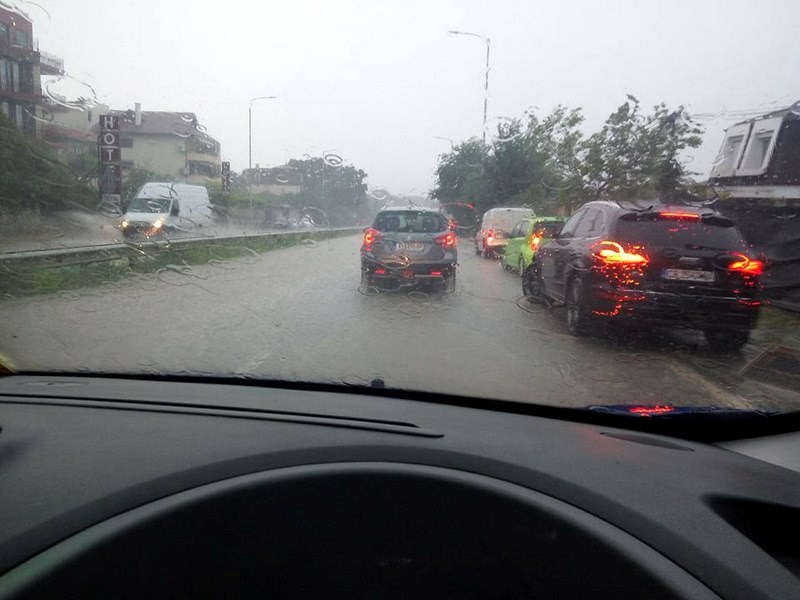 Улиците и булевардите във Варна са под вода и почти непроходими. Автомобилите едва преминават, споделят хора, закъсали в наводненията.