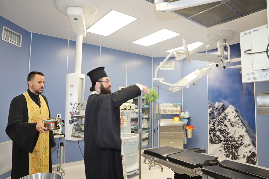 Операционните зали бяха осветени от архимандрит Василий, протосингел на Софийската Света митрополия, и отец Васил. Духовниците отслужиха водосвет за здраве и благополучие. „Нека болните, които лягат в новите операционни, се изправят здрави на крака”, благослови екипа архимандрит Василий и приветства медиците от името на Негово светейшество патриарх Неофит.