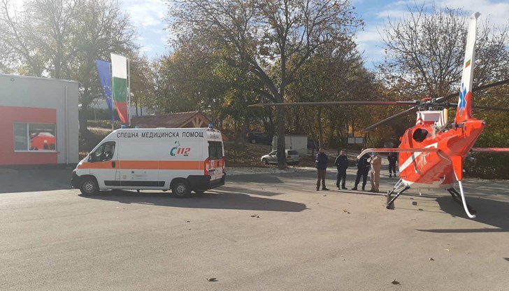 Жената е транспортирана до площадка в двора на Участък "Пожарна безопасност и защита на населението" - Сторгозия, откъдето е осъществен първият спешен медицински полет с хеликоптер от Плевен до София.