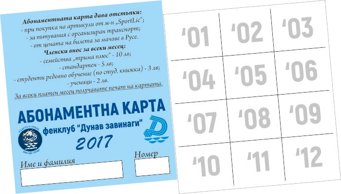 Фенклуб „Дунав завинаги“ приканва за пореден път към активност и съпричастност с дейността на организацията. Предвид елитния статут на „Дунав“ и за 2017/2018 ролята на феновете ще се засилва, а с това и необходимостта от вземане на решения за развитие. В тази връзка, още в първите дни на април ще бъде подновена процедурата за получаване на клубно помещение за фенклуба. Вашето участие може да се изрази в членски внос всеки месец, срещу който получавате печат и подпис в абонаментната си карта.