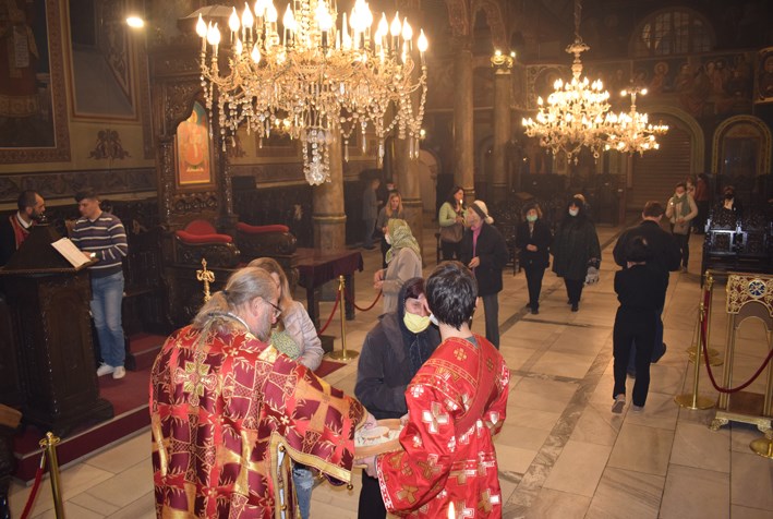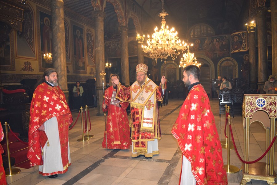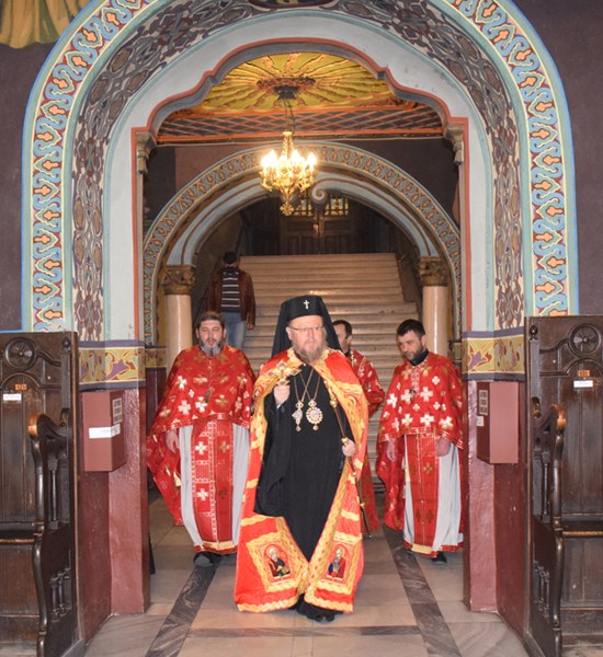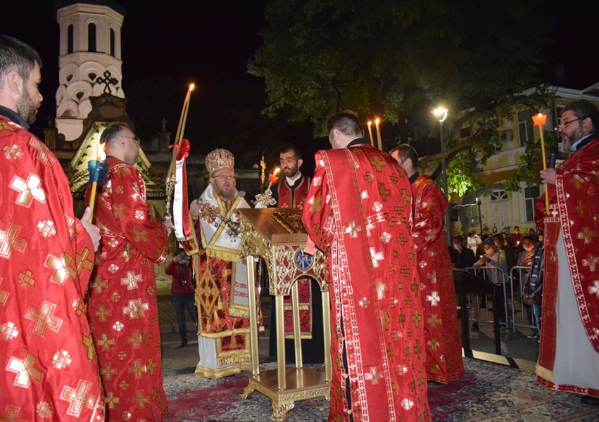 По-късно в храма Негово Високопреосвещенство възглави Пасхалната св. литургия в съслужение с иконом Алеко Рачев, председател на храма, прот. Светослав Анчев, свещ. Недялко Димитров и дякон Росен Георгиев.