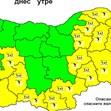 Обявен е жълт код за обилни валежи в 10 области на страната