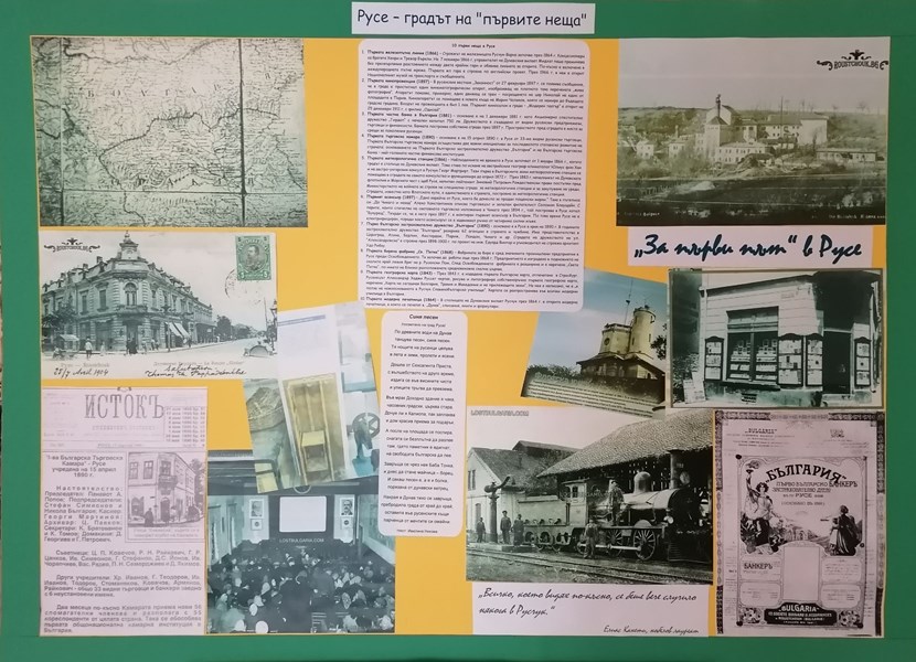 Учители, родители и деца се посветиха на тематична седмица, в която всеки ден малките учеха по нещо ново, случило се за първи път в Русе. Любопитни факти за първата железопътна линия, първата частна банка в България, първата географска карта, първата търговска камара и още много важни уроци за славното минало научиха най-малките русенци.