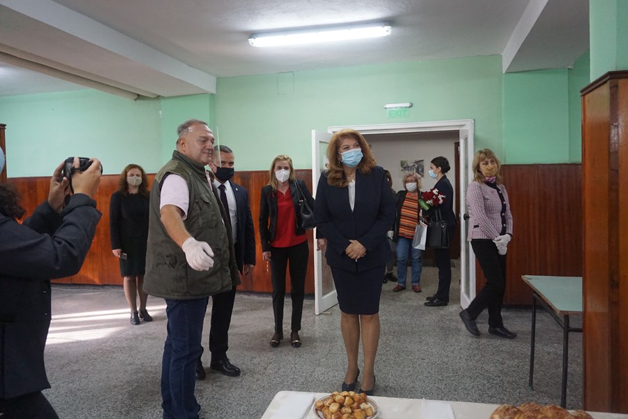 Визитата ѝ започна от най-младото училище в Русе ОУ „Никола Обретенов“. Неговите възпитаници посрещнаха делегацията с питка и народни танци. По-късно в аулата на училището децата направиха демонстрация, представяща дейността на клуба по роботика и се похвалиха със залата по спортна стрелба, с която разполагат.