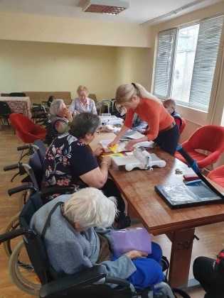 Възрастни хора правят валентинки в дом "Възраждане" в Русе