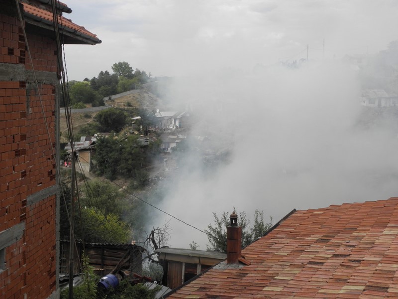 Час по-рано, в 14:45 часа, деца запалиха тоалетната на отсрещното било. По въздушна линия вторият пожар отстои на около 300-400 метра от първия.