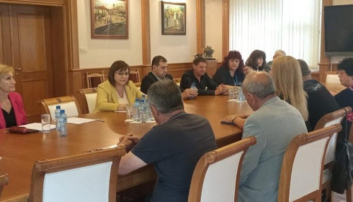 Нинова и директорът на Държавната консолидационна компания Смиляна Нитова са на посещение в завода и там се срещнаха с лидерите на синдикатите, ръководството на завода и с работните групи, с които досега са водили преговори за нов колективен трудов договор.