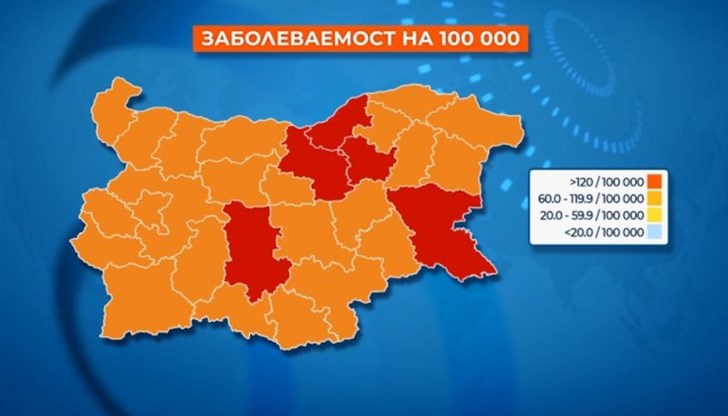 Велико Търново, Бургас, Търговище, Русе и Пловдив. Нито една област не е в "зелената зона". Най-много заразени на 100 хиляди души за 14 дни има във Велико Търново, съобщи БНТ.