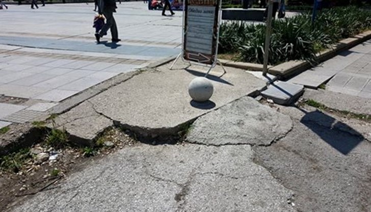 Великата инжинерна мисъл .... бетонна топка точно до място устроено за инвалиди и майки с колички! Пл. Свобода, Русе